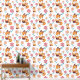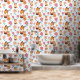 Cute red fox mother with baby and flowers pattern nursery wallpaper. A lovely pattern of a cute red fox mother with her baby and coral flowers adorn this wallpaper.