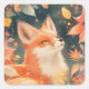 Red Fox Peeking Through Glowing Autumn Leaves Square Sticker
