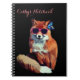 Digital red fox drawing , funky look, sunglasses and blue butterfly on Photo Notebook.Easy to custom your background color. Add your name or text.