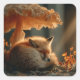 Red Fox Sleeping Under Giant Mushroom Square Sticker