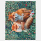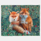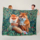 RED FOXES AMONG GREENERY, FOLIAGE AND FLOWERS FLEECE BLANKET