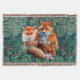 RED FOXES AMONG GREENERY, FOLIAGE AND FLOWERS THROW BLANKET