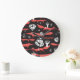 Red Foxes: Dark Background Seamless. Large Clock