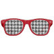 Red framed black and white houndstooth retro sunglasses