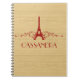 Elegant and chic French Flourish Notebook featuring a faux woodgrain look background and an Eiffel Tower design in dark red adorned with cascades of stylish swirls. This girly and trendy design is easy to customize with the personalized text of your choosing. Click "Customize It" to find more personalization options.