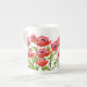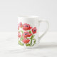 Original fine art design of colourful red garden poppies by artist Carolyn McFann of Two Purring Cats Studio printed on a quality bone china mug for floral art fans.