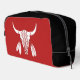 Red Ghost Dance Buffalo dopp kits are toiletry bags for Native Americans, cowboys and cowgirls, westerners, Western fans, and those who admire the spirit of the American buffalo. Red Ghost Dance Buffalo is Steamy Raimon original art.
