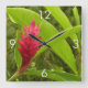Red Ginger Flower (Alpinia) Tropical Square Wall Clock