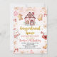 Sweet girl's gingerbread house decorating party birthday invitation featuring a cute gingerbread house, various sweets and candy, a snowman and hot chocolate. This gingerbread house decorating party birthday invitation also features a faux gold glitter calligraphy heading.