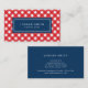 Business card featuring red gingham pattern with a blue centre on the front. Card has a matching blue back side. This trendy business card is ideal for various professions like interior designer, chef, baker, blogger, etc.