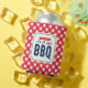 Keep your cans cool at your bbq party in this 4th of July BBQ can cooler featuring a light orange tint centre against a red gingham pattern background. Check out matching barbecue party items like invitation, stickers and stamps here https://www.zazzle.com/collections/gingham_bbq_party_collection-119000567419036723?rf=238364477188679314