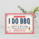 Celebrate an engagement party with a barbecue. This I Do BBQ Party invitation features a light orange tint centre bordered by a red gingham pattern and featuring BBQ staples like sausage, ketchup and mustard bottles. Card includes blue back side.