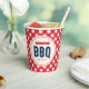 Celebrate the summer with a BBQ party. Impress your guests with this BBQ paper cups featuring a light orange tint centre bordered by a red gingham pattern.