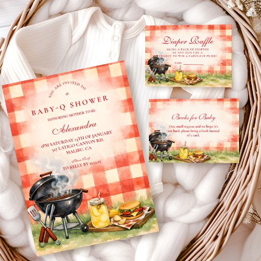 Red Gingham Baby Q Baby Shower Invitation