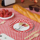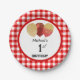 Red Gingham & Balloons 1st Birthday Paper Plate
