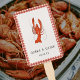 Keep cool this summer with this hand fan featuring a playfully hand-drawn crawfish illustration paired with classic red gingham set atop elegant personalised typography. Be it an engagement party, birthday party, annual family get together, a crawfish boil is always a good idea, cher!