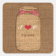 Red Gingham & Burlap Mason Jar Wedding Square Sticker