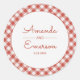 Red Gingham Check Fun Casual Custom Wedding Favour Classic Round Sticker