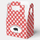 Barbecue party favour box with pig on a red and white check pattern. Easy to add your company name and phone on front and custom text on the back using the personalise template.