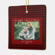 Create your own custom photo Christmas ornament featuring one of your favourite family pictures alongside personalised minimalist typography name and year on a classic red gingham plaid pattern background.