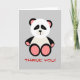 A thank you card featuring an illustration on the front of a panda bear with red gingham paws and ears. Text says "Thank You!" Inside is blank.