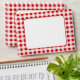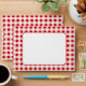 These cute invitations and coordinating items are printed with a red gingham pattern. Click "customise it" to change the white background to your favourite colour.