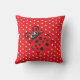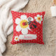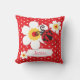 Bright red, yellow and white girls name pillow, featuring ladybugs and flowers designed by exclusively by Sarah Trett. Customise with your name, this example reads Jessie. Would be a great additional to kid's red or nature themed bedroom to help personalise their space.