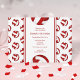 This girls' volleyball birthday party invitation is fully customisable and features a pattern of girly red and white volleyballs on the front and back - customise her birthday party invitation text on a white background with red border accents - the red panels of the volleyballs are blended with a pretty floral kaleidoscopic pattern, and the white volleyball panels are blended with an abstract swirl pattern for a textured appearance that is artsy and girly - by katz_d_zynes