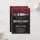 Red Glitter 100th Birthday Invitation. White Typography. Black and White Chalkboard Background. Adult Birthday. Male Men or Women Birthday. Kids Boy or Girl Lady Teen Teenage Bday Invite. 13th 15th 16th 18th 20th 21st 30th 40th 50th 60th 70th 80th 90th 100th. Any Age. For further customisation, please click the "Customise it" button and use our design tool to modify this template.
