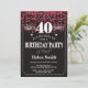Red Glitter 40th Birthday Invitation. White Typography. Black and White Chalkboard Background. Adult Birthday. Male Men or Women Birthday. Kids Boy or Girl Lady Teen Teenage Bday Invite. 13th 15th 16th 18th 20th 21st 30th 40th 50th 60th 70th 80th 90th 100th. Any Age. For further customisation, please click the "Customise it" button and use our design tool to modify this template.