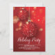 Beautiful Elegant Red Chitter Christmas ornament set on a red bokeh background. Flip our unique invite over to view a matching back for an extra special touch. Perfect holiday season invitation for a neighbourhood get together, office party, office cocktail party or christmas party,