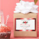 Matching a shimmery red frame with soft glitter stars and a fine golden decor on a white background.
