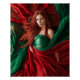 Amazing design featuring a red-haired model with green and red fabric.