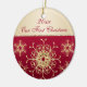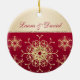 Remember your special day with this beautiful red and gold faux glitter (PRINTED) snowflakes round shaped ceramic first Christmas together keepsake ornament that can be customised with the names of the bride and groom, and the year. You can customise the text to say whatever you want. ****PLEASE be sure your text is placed where you want it, as it will print out as it appears on your monitor. Zazzle will NOT correct anything. It also matches the wedding invitation shown below. If you would like a different shape, or if you need any assistance, please email niteowlstudio@gmail.com.