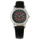 This stylish watch features a simple red, gold and black circular mandala abstract pattern.