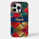 Red, gold, midnight blue, and teal combine to make a rich-looking iPhone case. Beautiful and stylish. Personalise with your name in a midnight blue band in the middle.