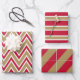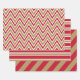 Red, Gold, and White Chevron & Stripe Patterns Wrapping Paper Sheet
