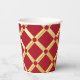 Elegant red and golden paper cups. Ideal for parties and festive special occasions. Red background with a golden Arabic-inspired pattern in modern style. Abstract, illustration, elegant, geometric, modern, ethnic, baroque, luxury, Arabic, Moorish, motif. Size: 236ml, no lid.