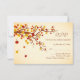 Red and gold falling autumnal leaves Wedding RSVP flat card