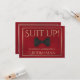 Use this "groomsman proposal card" to ask your special friend, brother, or other family member to a groomsman at your wedding. It features a cute image of a black bow tie on a marbled red background and says: Suit Up! Your Services are Requested as Groomsman" There is a space to enter a special note asking "will you be my groomsman?" as well as the wedding couple's names and wedding date. All fields are fully customisable.