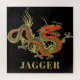 A fierce black Chinese dragon outlined in gold decorates this item. Red accents highlight the dragon's jaw, head and spine. Your name is written in bold gold below.