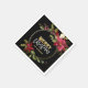 Personalise these elegant Christmas napkins in watercolor floral poinsettia flowers. Red, gold and black colours. Personalise by adding last name, message or delete.
