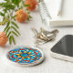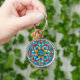 On this keychain is a stunning mandala design in tones of bright blue, gold, and red. Be sure to see the matching earrings and necklace in our store.