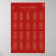 Wedding seating chart in red and gold cherry blossoms design.