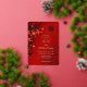 Real gold foil blossom branches, red cherry blossoms and a real gold foil double happiness symbol on a red shimmering background. The names in an elegant classic script.