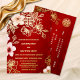 This elegant floral Chinese wedding invitation features a real gold foil line art flowers on a red background. 金箔婚礼请柬