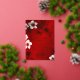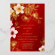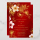 This elegant floral Chinese wedding invitation features a real gold foil line art flowers on a red background. 金箔婚礼请柬