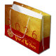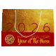 Modern design with golden textured paper (printed image) with large 2026 in red + small Horse paper cut-out with yellow texts HAPPY NEW YEAR and Year of the Horse onto a red background. Design on large gift bag with red background. Available in medium size. You can easily change year by clicking the customise button. Matching greeting card, holiday postcard, sticker and more soon... Perfect for a timeless and modern Chinese New Year of the Horse 2026.
