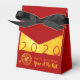 Modern design with golden texture image with large 2020 in red + small Rat paper-cut + Rat ideogram with yellow texts HAPPY NEW YEAR and Year of the Rat onto a red background. Design on tent favour box with red background. Matching greeting card, invitations and more... Perfect for a timeless and modern Chinese New Year of the Rat 2020.