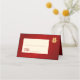 Chinese wedding place card with a shimmering red background and an artistic golden happiness symbol.